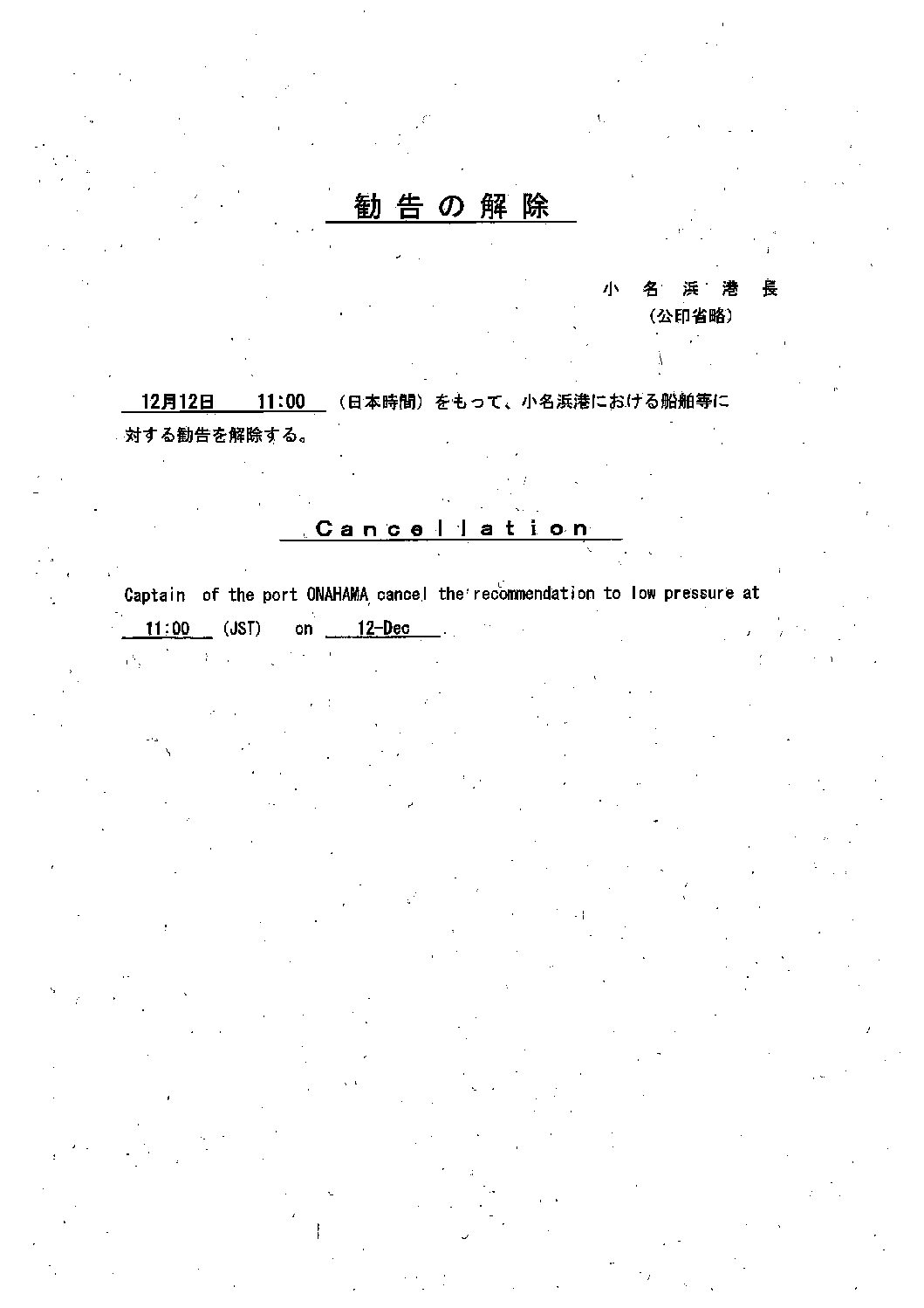 警戒勧告解除のお知らせ 2025.12.12 News 令和7年12月11日(木)に発令されていた警戒勧告が本日解除されました。 皆様におかれましては、引き続き安全対策や、気象情報の留意をよろしくお願いいたします。