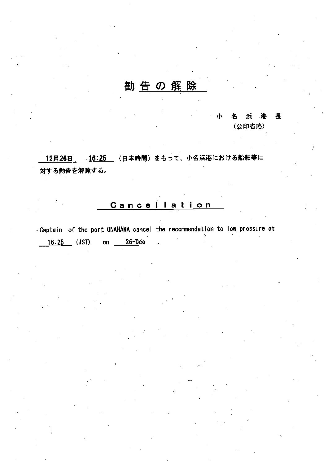 警戒勧告解除のお知らせ 2025.12.26 News 令和7年12月25日(木)に発令されていた警戒勧告が本日解除されました。 皆様におかれましては、引き続き安全対策や、気象情報の留意をよろしくお願いいたします。